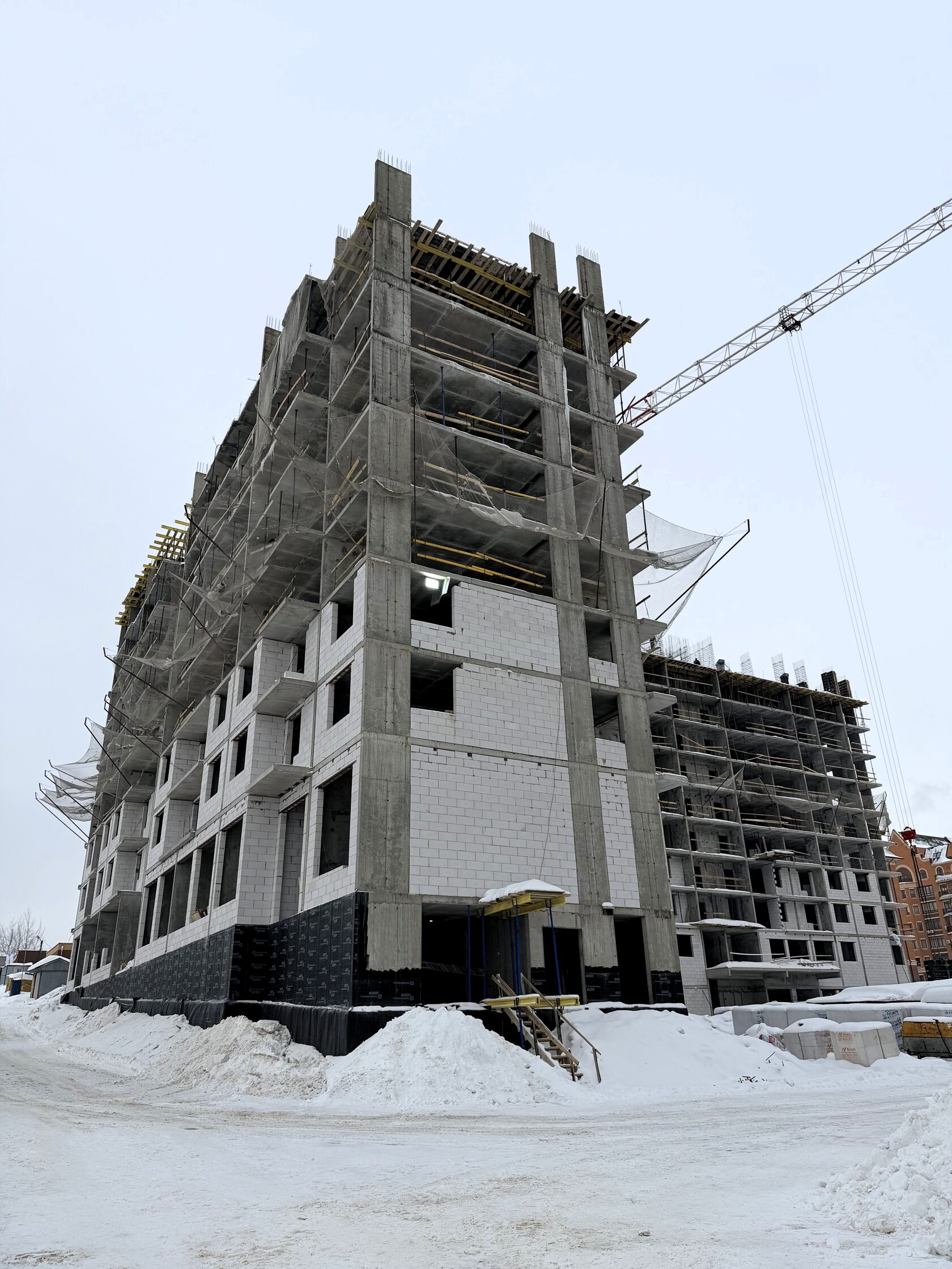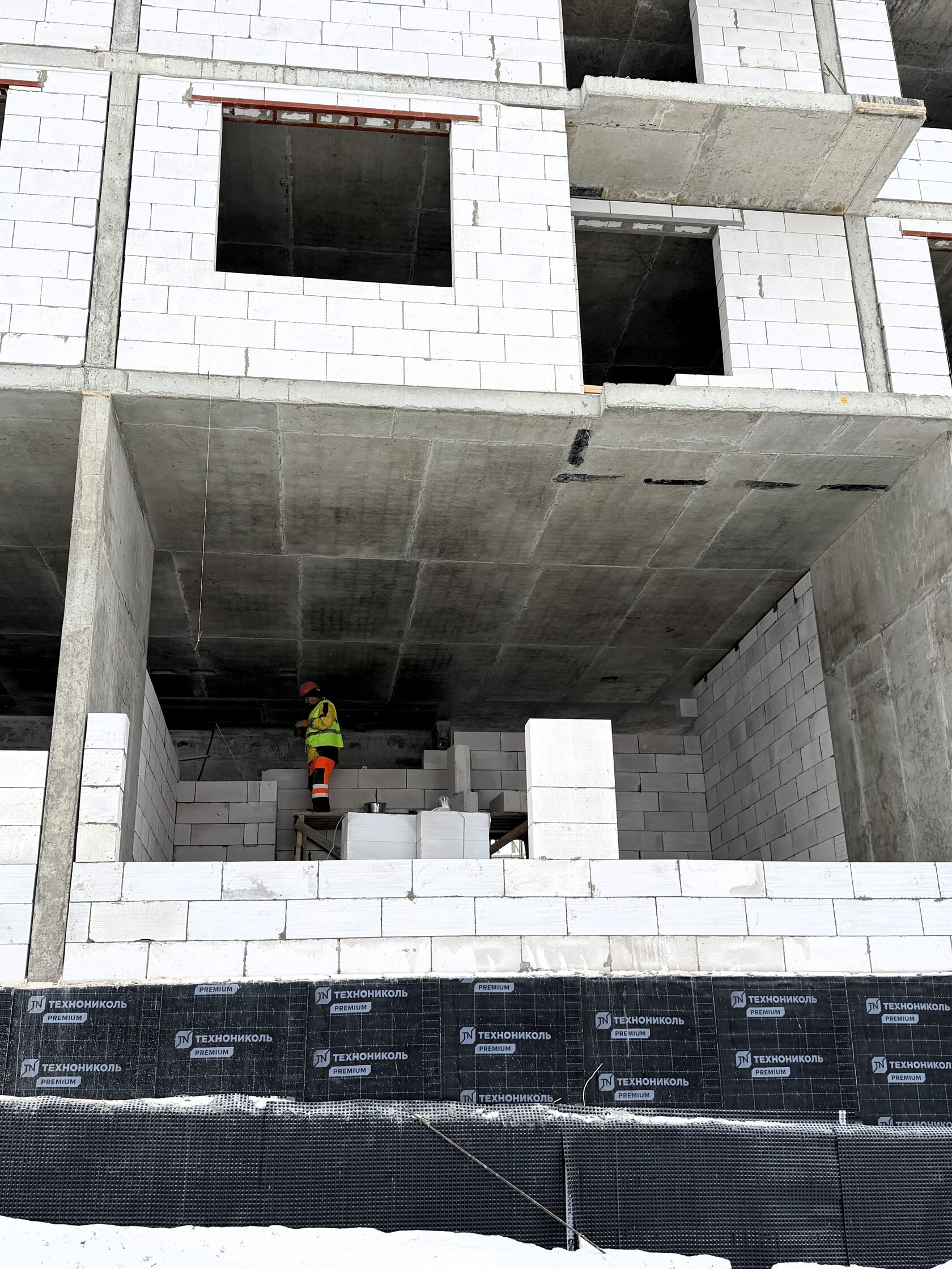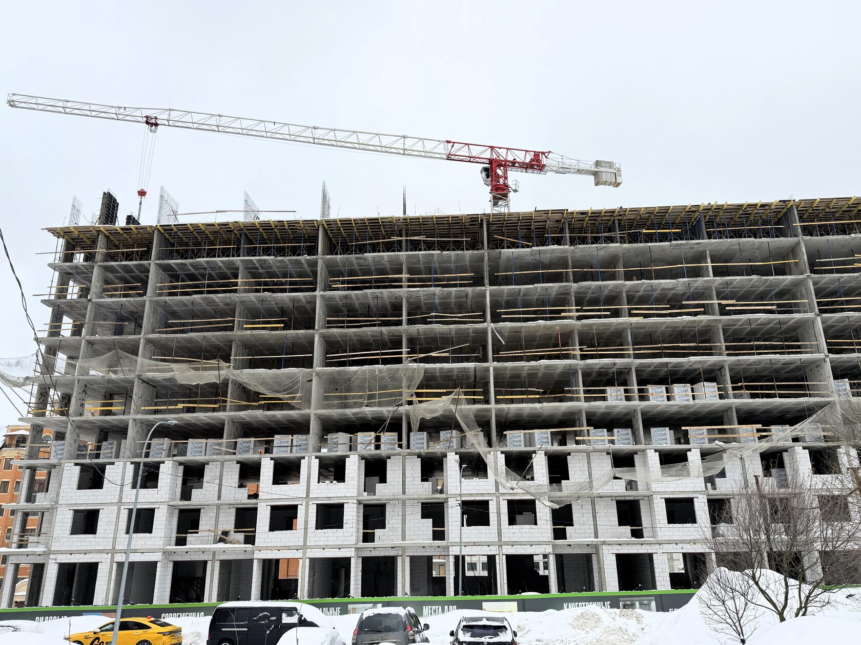 Ведутся монолитные работы на 8-9 этажах и кладочные работы нижних этажей.